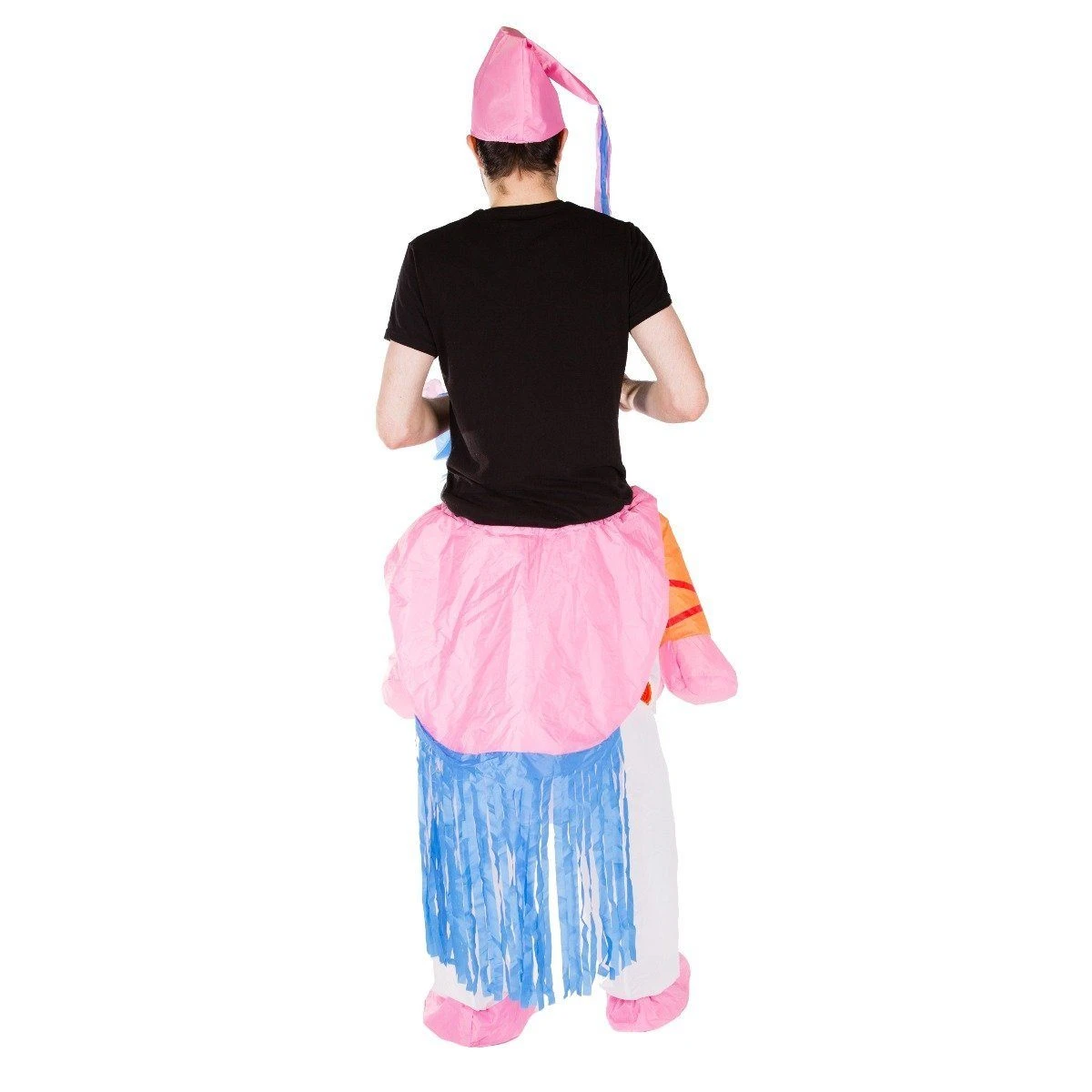 Become a mythical creature with our adult inflatable unicorn costume! This funny ride on unicorn fancy dress comes with a free hat to complete the look! Suit up with our blow up outfit!