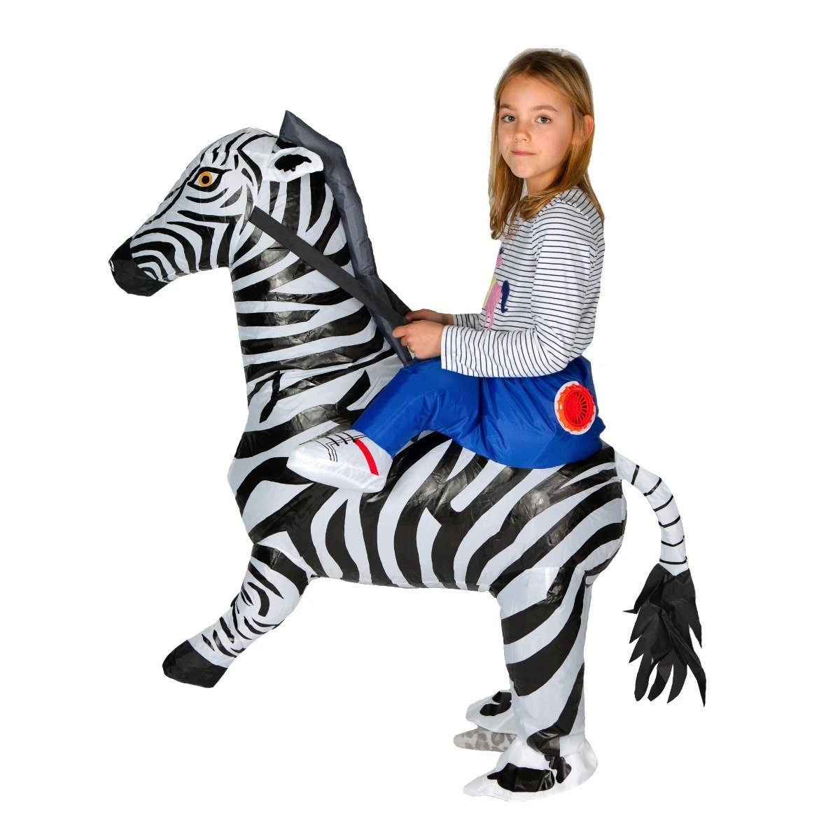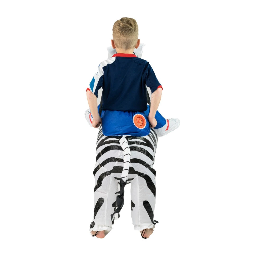 Keep it black and white with our kids inflatable zebra costume! This funny ride on zebra fancy dress will steal the show at any event! Suit up with our blow up outfit for children!